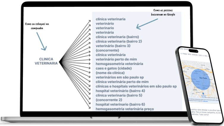 O Google Ads é uma plataforma de publicidade digital onde empresas promovem seus produtos e serviços diretamente no Google e em sites parceiros. Quando alguém pesquisa no Google, os anúncios relevantes aparecem no topo ou na lateral da página de resultados. Se você tem uma clínica veterinária, por exemplo, pode fazer um anúncio que apareça quando alguém buscar “clínicas veterinárias 24 horas”. Você escolhe palavras-chave, define um orçamento e só paga quando alguém clica no seu anúncio, alcançando pessoas interessadas.